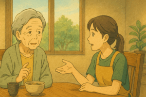- 季節の話題から食べ物につなげる(例:「栗ごはん食べた?」)